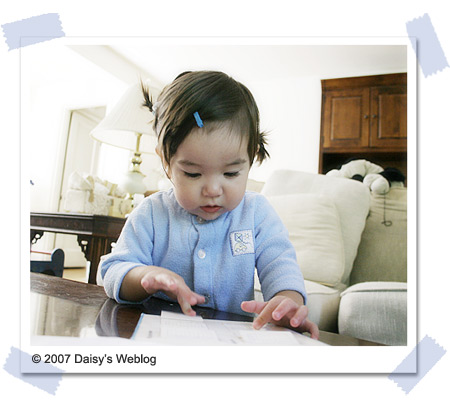 加恩翻看圖畫書(攝於今年九月)我最喜歡看書了,爸比和媽咪每天都會念書給我聽喔! 每天早上我起床後的第一件事就是跑到客廳裡,從紙箱裡拿出 Natasha 姨姨 (媽咪的大姐姐) 送給我的圖畫書,一頁頁地翻看,讓媽咪知道我又認識了哪一些新的事物和動物呢! 媽媽說她很好奇為什麼我小小的腦袋瓜能裝那麼多的東西,又總是能夠清楚地辨認哪一個人是叔叔,哪一個人是姨姨,哥哥和姐姐。我偷偷地告訴你我的祕密,不能讓媽咪知道喔…..(一) 看身高和頭髮。比我高很多的,有長頭髮的是姨姨,短頭髮的就是叔叔啦! 哥哥姐姐也是同樣的道理,只是他們比叔叔姨姨矮。舉個例子來說,Disney 頻道上的 Imagination Movers 的團員中就有三個叔叔跟一個姨姨。