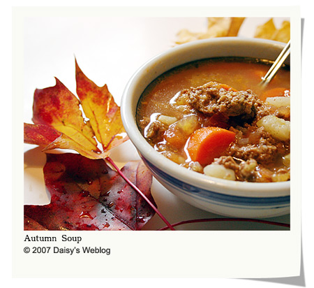 入秋了,西雅圖這裡的晚上已有些寒意。人家說 : There’s no place like home。像這樣的季節,讓人很想什麼事都不做,蓋條小毯子窩在家裡的沙發上看部喜歡的電影,享受一碗熱騰騰的湯呢! Autumn Soup 是大寶很喜歡,非常容易作又有所謂『媽媽的味道』的湯。喜歡美式風味的湯的朋友不妨試試看!