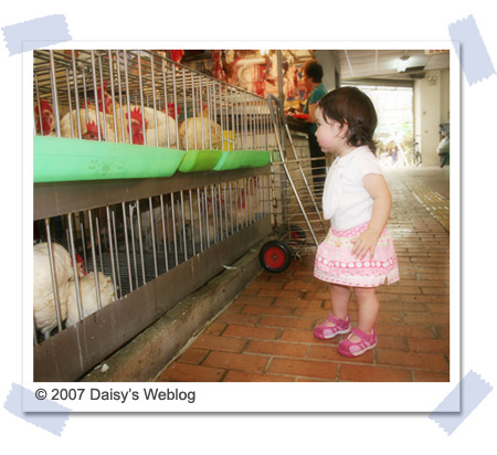 女兒在傳統市場經過長達十三個小時的飛行,加恩跟我終於在今天早上回到台灣,展開這次為期僅一週半的迷你返鄉假期。卸下行李,歇息一下,姐姐提議帶我和加恩到附近的菜市場逛逛。雖然台灣的夏天有點悶熱,想到這個難得能讓小加恩看看傳統市場的機會,我還是興奮地馬上說好。就這樣,我們在人群中走過一攤攤令人目不暇給的新鮮蔬果、肉類、海鮮魚貨及各色的美味熟食,雖然有些擁擠,也有一點髒亂,鼻端飄來市場裡特有腥味卻勾起了我的許多童年的美好回憶。小時候常陪媽媽去買菜,那是件令我期待的事。我喜歡看看市場裡有沒有低頭忙著覓食的野狗,盼望媽媽有一天會終於同意讓我帶一隻回家去。貪吃的我還想知道媽媽今天要買什麼,看看晚上的飯桌上是不是又有好吃的東西了。小孩子的願望好像就是這麼單純與簡單,很容易滿足。長大後慾望反而越來越多,常常想要一些自己其實並不需要的東西。不過如今回想起來,那種快樂與滿足感不但記憶猶新,而且多了一份可愛。陪媽媽買菜其實也有我不喜歡的地方。我媽媽很喜歡和攤販討價還價,總會央求小販算她便宜一些,或是送她一點青蔥什麼的,讓臉皮薄的我常常覺得很不好意思,並在心中立志長大後一定不要像媽媽一樣「貪小便宜」。我也不喜歡和媽媽去買雞。賣雞的歐巴桑手裡抓著媽媽挑好的肥雞,待宰的雞踢呀踢的,似乎知道自己的命運。只見歐巴桑一面跟我媽講話,一面動作伶俐地拿刀往雞的脖子劃了一下,接著又神色自若地把宰好雞丟進一個又高又大的塑膠桶裡。聽著筒子裡尚未斷氣的雞猛力地踢呀踢的,我不禁雞皮疙瘩四起。想著這裡,我回頭看了正目不轉睛地望著籠裡的雞的女兒一眼,忍不住地笑了一下。在美國還真是很少機會能看到像台灣這樣熱鬧的傳統市場呢! 女兒將來大概也不會有興趣聽我回憶兒時看雞販如何殺雞,我又是如何地愛吃雞眼,啃雞頭的陳年往事。這些瑣事現在聽來或許有些噁心,回憶起來卻真是別有一番童年的滋味呢!童年時的我